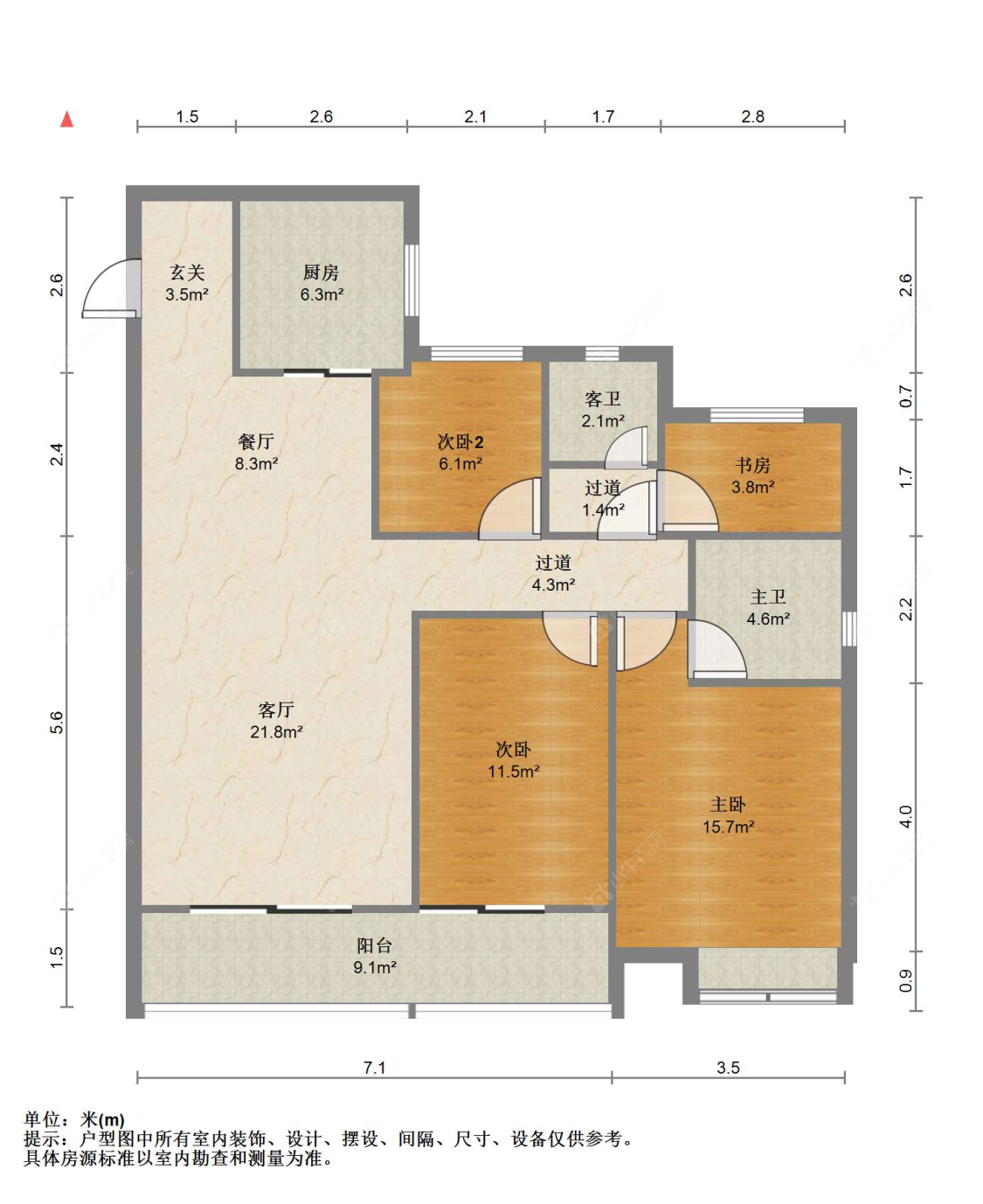 3室2厅2卫 | 102㎡ | 南