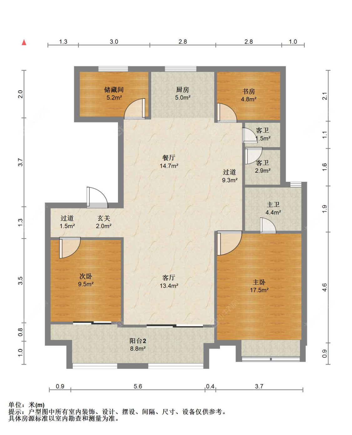 3室2厅2卫 | 110㎡ | 南