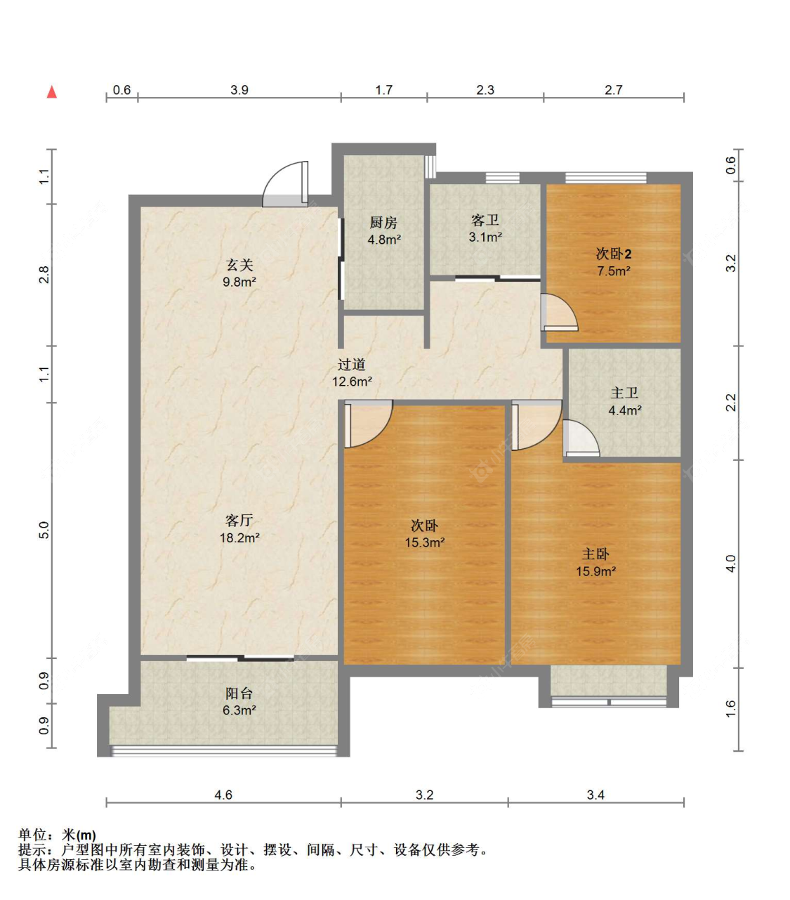 3室2厅1卫 | 88㎡ | 南