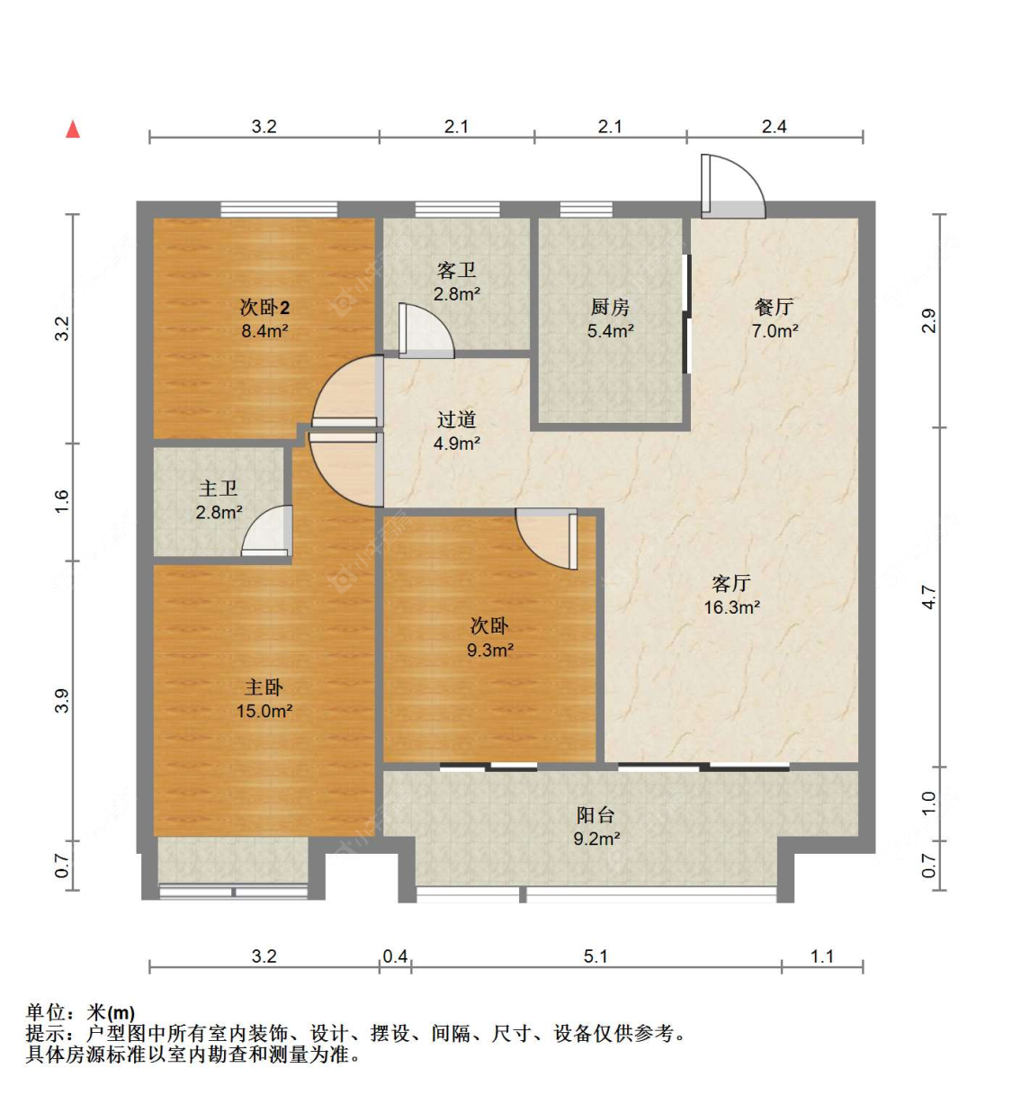 3室2厅2卫 | 110㎡ | 南