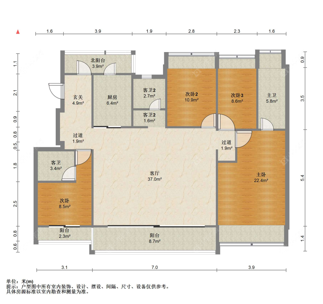 3室2厅2卫 | 98㎡ | 南
