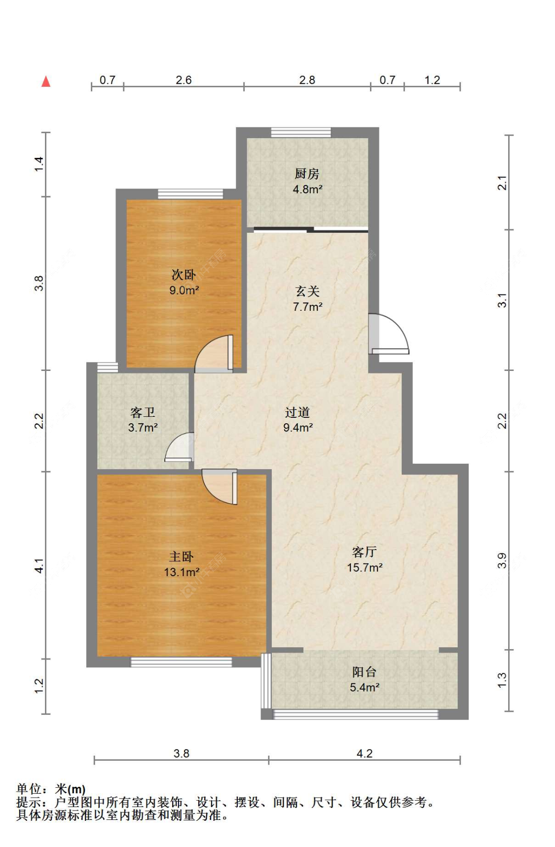 2室1厅1卫 | 98㎡ | 南