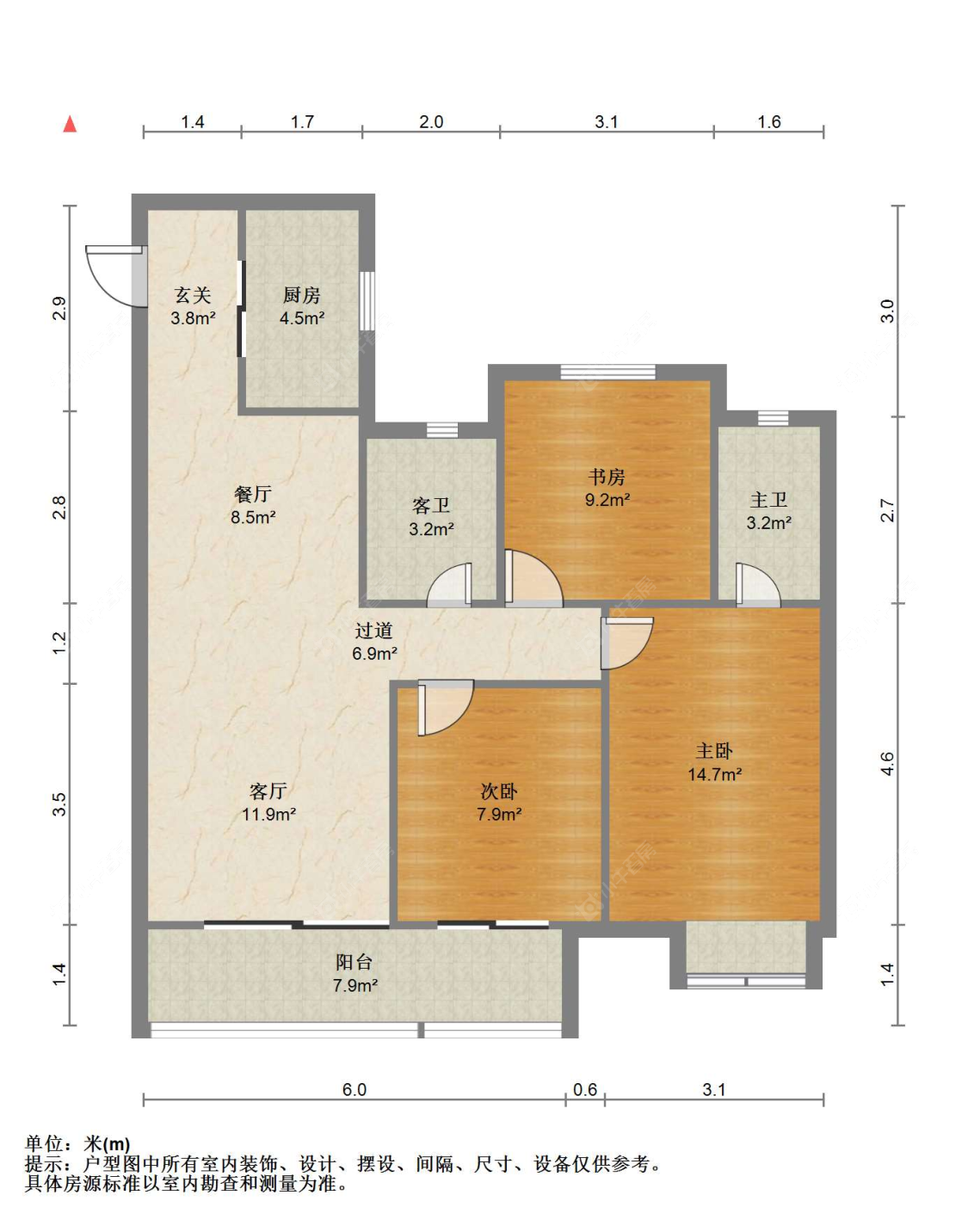 3室2厅1卫 | 114㎡ | 南