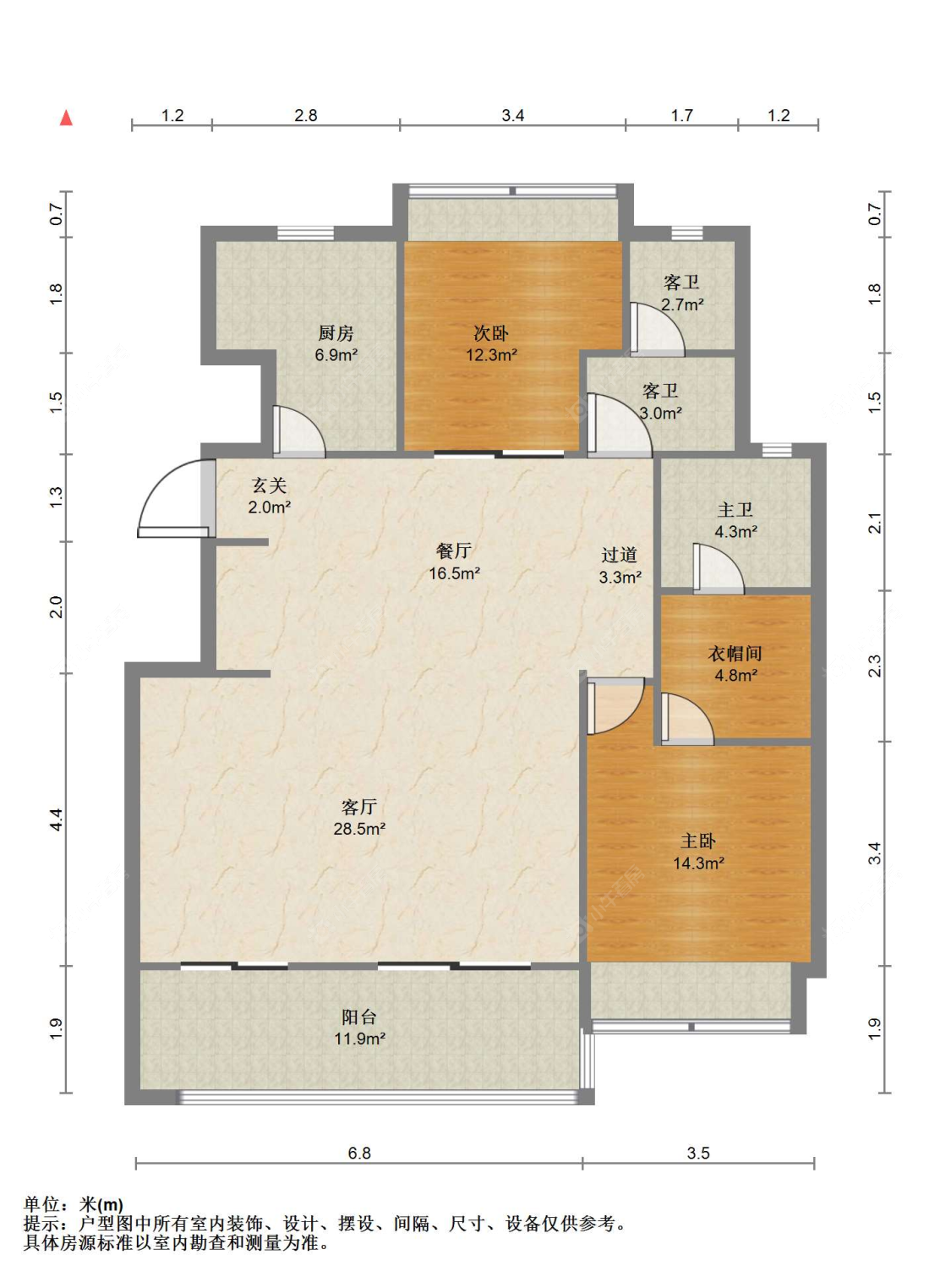3室2厅2卫 | 99㎡ | 南