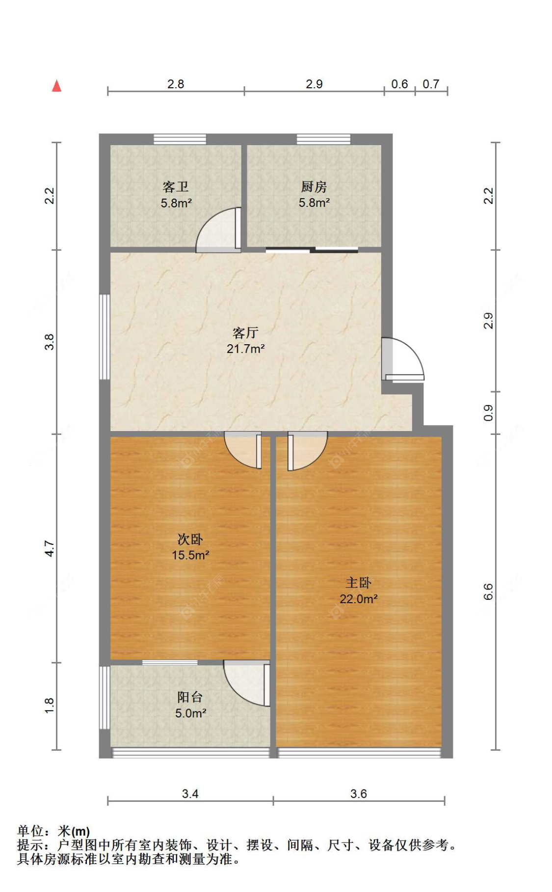 2室2厅1卫 | 80㎡ | 南