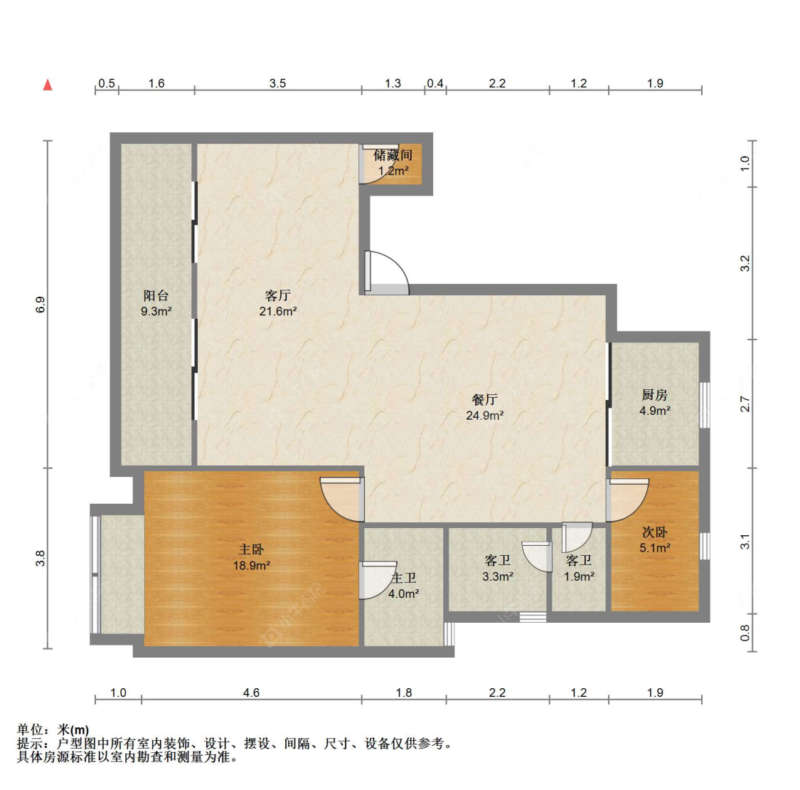 3室2厅2卫 | 110㎡ | 南